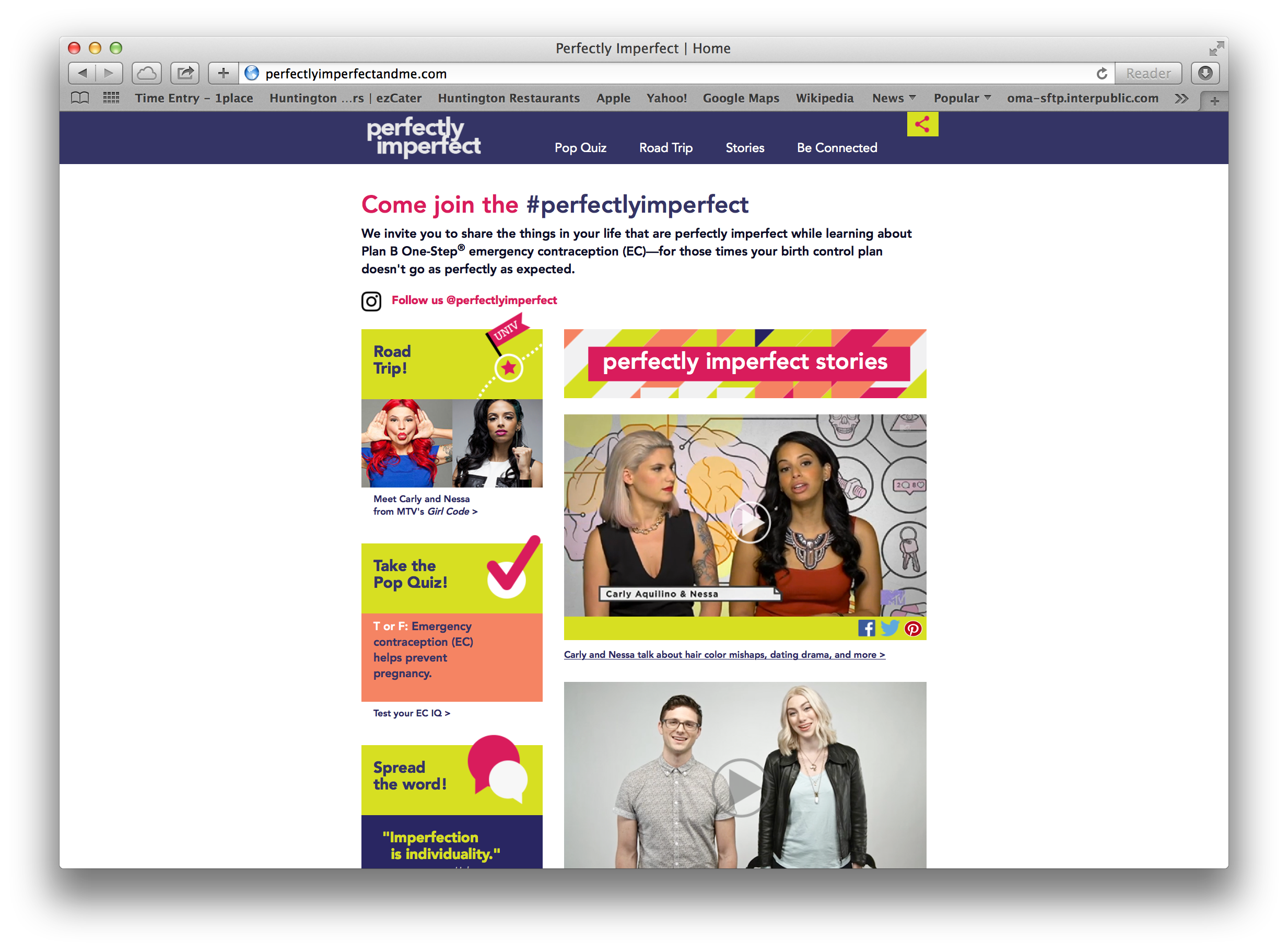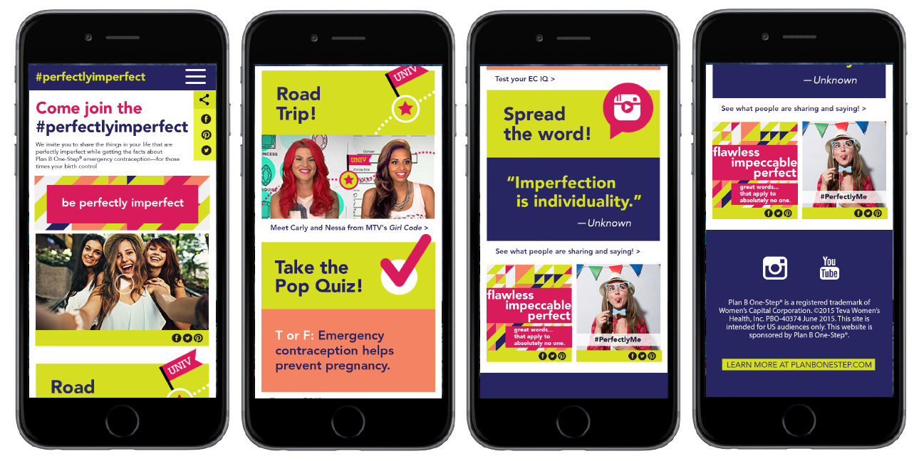 The Perfectly Imperfect Emergency Contraception (EC) Campaign acknowledged imperfections, rather than stigmatizing them, via a range of media; we encourage our millennial audience to look at a birth control “oops moment” as a manageable moment in a “perfectly imperfect” life.
